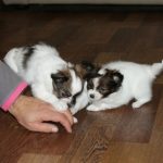 Наша принцесса — Купалинка очень нарядного триколорного окраса, с симметричной проточиной, белокорпусная. Девочка крепенького сложения, с хорошим весом в 8 недель 1,4 кг. Зубки 6*6. Более подробно о Лине у нее на странице.