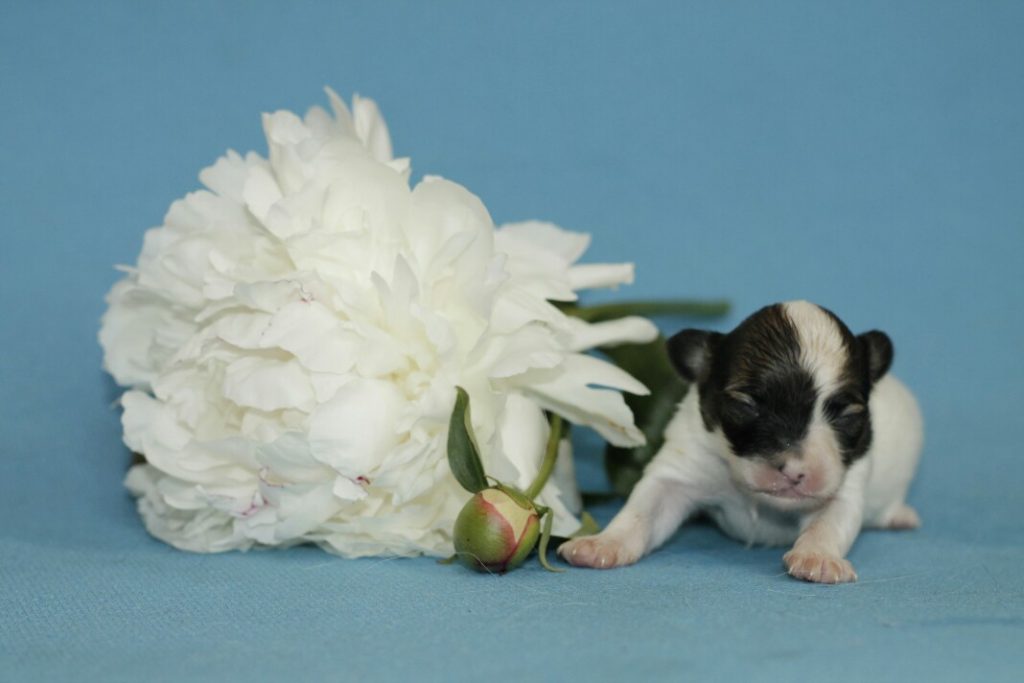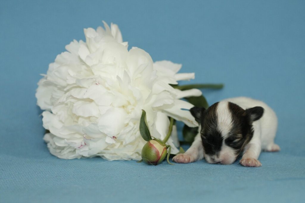 Lyutik Dob 30 may, 2018, male, white- sable (red sable) color. Very small size in 3 months-1kg weight.