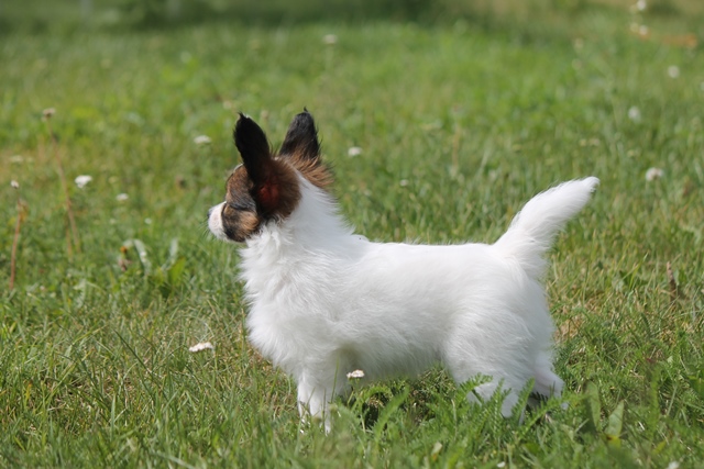 Кузя — кобель, бело- соболиного окраса, белокорпусный, с симметричной проточиной.